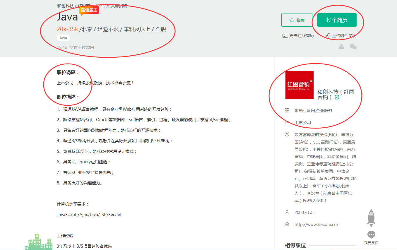 越重要的部分越突出:職位名稱和薪資,公司名稱和Logo,職位描述,投個簡歷等信息分別通過加粗加大字體,顏色突出等方式展示;