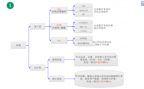 一般意義上的app、web其實只是前端模式的幾個分支而已。前端從形態(tài)上來講又會劃分為客戶層和執(zhí)行層,怎么理解呢?簡單點來說,客戶層就是普通用戶(大眾)使用的層面,比如QQ、淘寶等。它們的面向?qū)ο缶褪钦鎸嵱脩簦瑥倪@點上來看,一般會用某個產(chǎn)品的用戶量來評估產(chǎn)品的價值。客戶層分為手機(jī)應(yīng)用、PC軟件、Web三大形式。手機(jī)應(yīng)用即裝載在手機(jī)上的程序軟件、現(xiàn)在主流的平臺就是iOS、Android、Windows phone三大系統(tǒng),塞班也屬于以前的系統(tǒng),其中android又因為開放特性分為小米、魅藍(lán)等形式,這塊做了解即可。