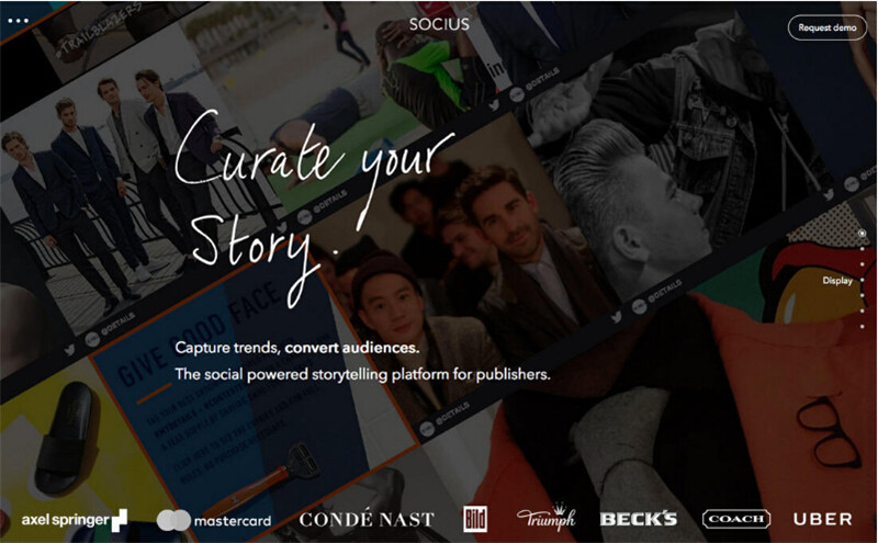 在上面的Socius 頁面的右側(cè),使用了許多同類網(wǎng)站都采用的小圓點(diǎn)來作為視覺標(biāo)識,當(dāng)光標(biāo)懸停在小圓點(diǎn)上的時(shí)候,會有信息浮現(xiàn),告訴用戶這些區(qū)域的內(nèi)容。同樣的,用戶可以通過點(diǎn)擊這些小圓點(diǎn)快速跳轉(zhuǎn)到特定的區(qū)域。