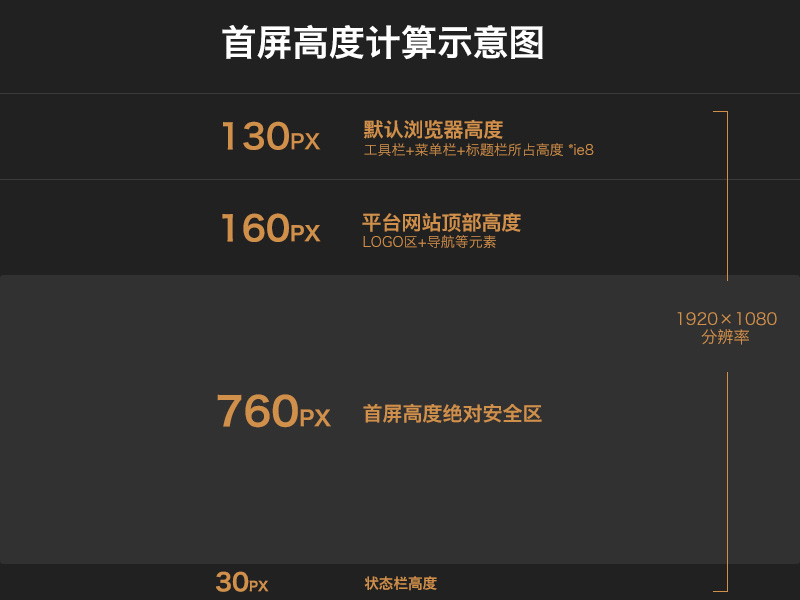 首屏的高度值等于用現(xiàn)有主流用戶的電腦設(shè)備分辨率「減去」瀏覽器環(huán)境大小。