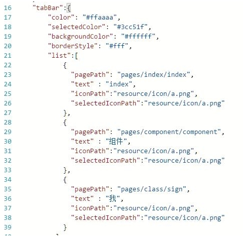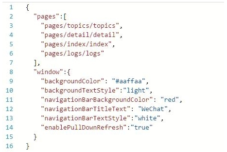遵循json文件格式規(guī)范,通過配置此文件可以設(shè)置小程序的特性。文件如下圖: