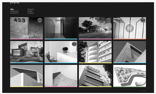 網(wǎng)站整體采用灰度系的顏色來設計,給予用戶一種神秘的感覺,但這種色系同時也容易帶給用戶深沉郁悶的情緒,并不適宜作為大范圍使用考慮的色彩格調,除非你能巧妙地使用,能夠讓用戶在瀏覽網(wǎng)站時感受到“撥開云霧,柳暗花明”的奇妙體驗。如下一個網(wǎng)站,把鼠標放在個圖片上,立馬顯示原有的豐富色感。