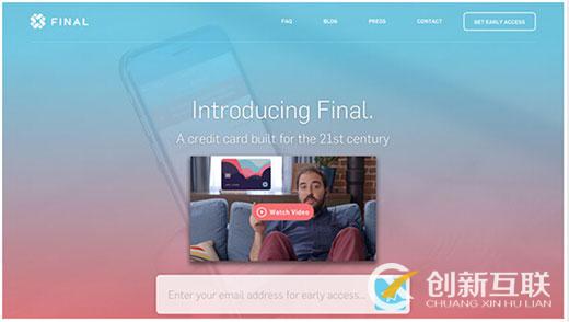 漸變色的網(wǎng)站色調與上面所說的繽紛色的網(wǎng)站風格有些類似,區(qū)別只是在與多少種顏色的搭配,漸變色通常強調不超過兩種顏色的漸變,否則會引起顏色混亂的頁面視覺體驗。